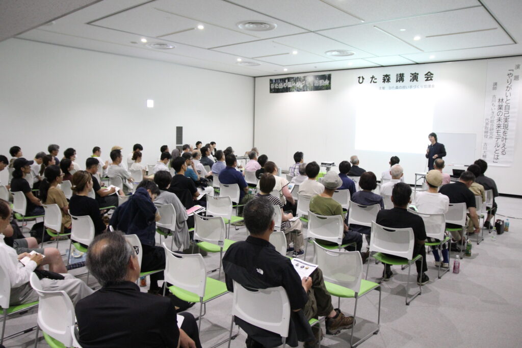 2025年7月19日、株式会社古川ちいきの総合研究所・代表取締役の古川大輔さんをメインゲストに招いての第2回ひた森講演会「やりがいと自己実現を叶える林業の先端モデルとは?」を開催しました。その一部を紹介します。