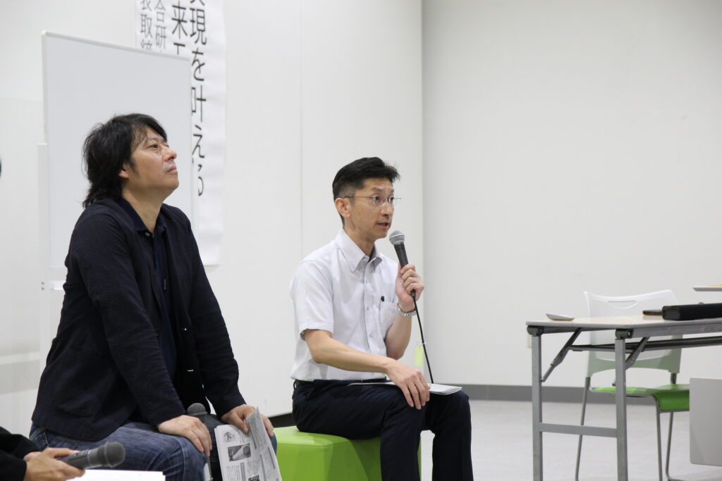 まずは、林野庁から日田市に出向している服部副市長が、日田林業の強みや独自性を解説。古川さんの示した全国的な視点を、日田というローカルと重ねていきました。