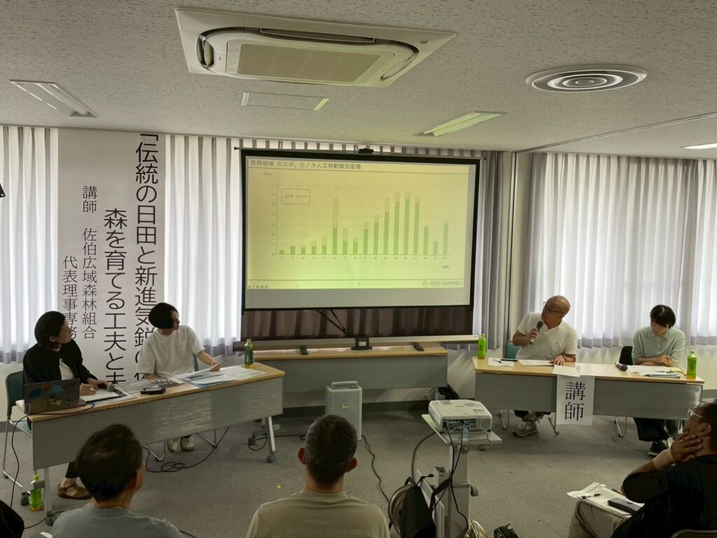 また、佐伯広域森林組合の「ほぼ100%の再造林率」という持続可能な森林経営には、森林所有者との契約を「伐採」だけで終わらせず、その後の「再造林」と、苗木の成長に不可欠な「5年間の下刈り」までを一つのパッケージとしているサイクルや、伐採事業者には木を伐るだけでなく、植えやすいように山を整える「事後整地」までを依頼し、次の植林工程がスムーズに進むよう図っていることも共有されました。